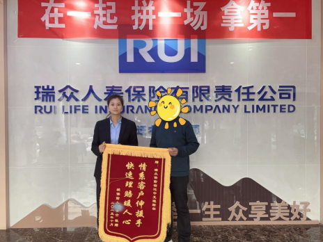 近日,瑞众保险宿迁中支收到了一份承载着客户深厚谢意的特殊礼物——一面写有“情系客户伸援手 快速理赔暖人心”的锦旗。客户W女士的家属亲自到场,对公司在理赔过程中展现出的高度专业、极致高效与人文关怀表达了深深的感激与高度认可。